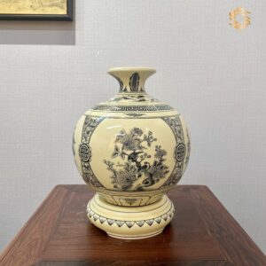 Bình hút lộc Gốm Chu Đậu H45 hoạ tiết tứ cảnh Hà Nội men gốm truyền thống HLTB12
