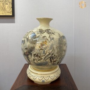 Bình hút lộc Gốm Chu Đậu H25 hoạ tiết cá chép hoa sen vẽ vàng 24k HLCC02