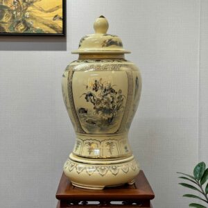 Choé Gốm Chu Đậu H60 hoạ tiết tứ cảnh vẽ vàng 24k ý nghĩa