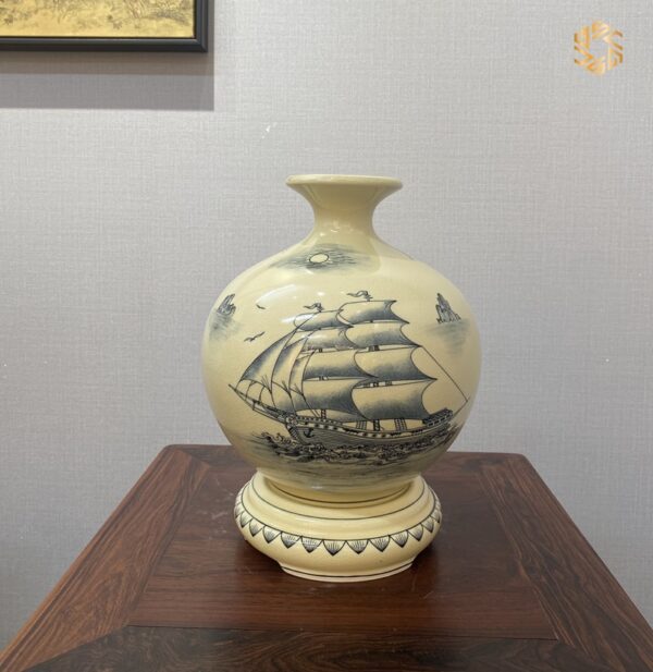Bình hút lộc Gốm Chu Đậu H25 hoạ tiết thuận buồm xuôi gió men gốm truyền thống HLTB08