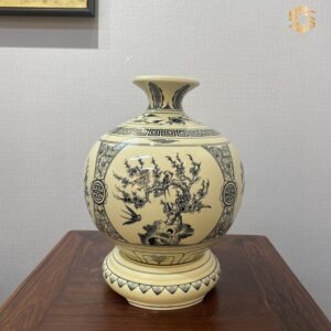 Bình hút lộc Gốm Chu Đậu H25 hoạ tiết tứ cảnh chữ Phúc men gốm truyền thống HLCP08