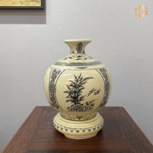 Bình hút lộc Gốm Chu Đậu H25 hoạ tiết tùng cúc trúc mai men gốm truyền thống HLBM08