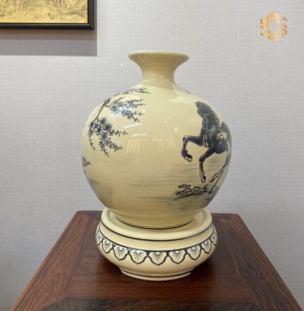 Bình hút lộc Gốm Chu Đậu H40 hoạ tiết mã đáo thành công men gốm truyền thống HLMD11