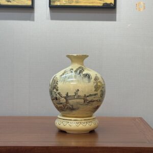 Bình hút lộc Gốm Chu Đậu H30 hoạ tiết Sơn Thuỷ Đồng Quê ý nghĩa vẽ vàng 24k HLST03