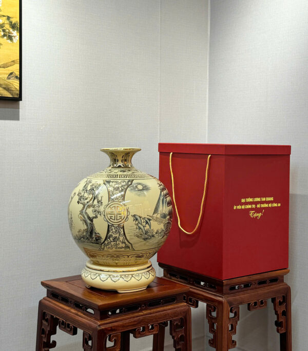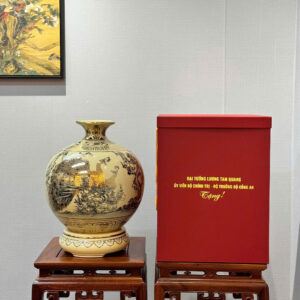 - Bình Hút Lộc Gốm Chu Đậu hoạ tiết THUẬN BUỒM – CÔNG ĐÀO nhẹ nhàng ý nghĩa vẽ vàng 24K từ làng nghề truyền thống Gốm Chu Đậu nổi tiếng của Việt Nam, là món quà tặng vô cùng ý nghĩa phù hợp trong nhiều trường hợp cụ thể như: Biếu Tặng Sếp – Lãnh Đạo, Tân Gia, Tặng Doanh Nghiệp, Hội Nghị.