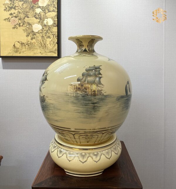 Bình hút lộc Gốm Chu Đậu H45 hoạ tiết thuận buồm xuôi gió vẽ vàng 24k HLTB06