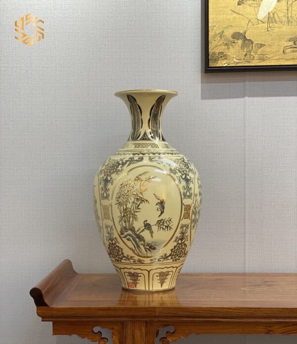 Bảo bình Gốm Chu Đậu vẽ vàng 24k hoạ tiết tứ cảnh BB02