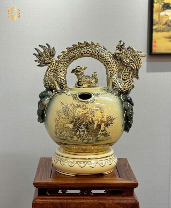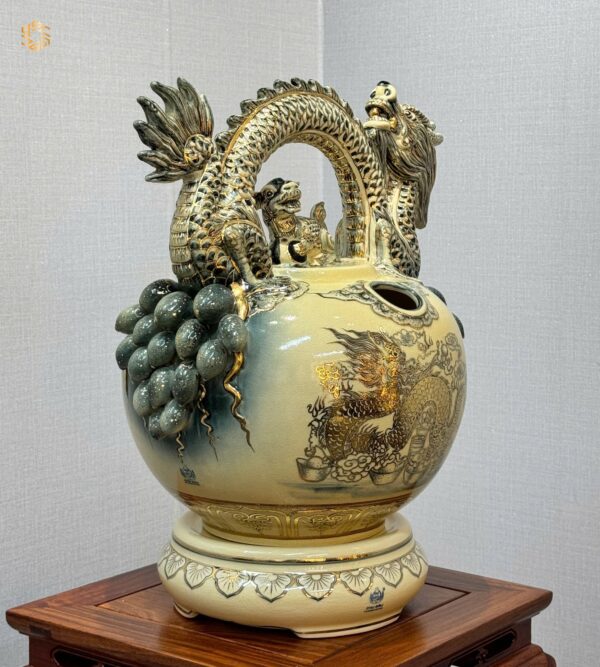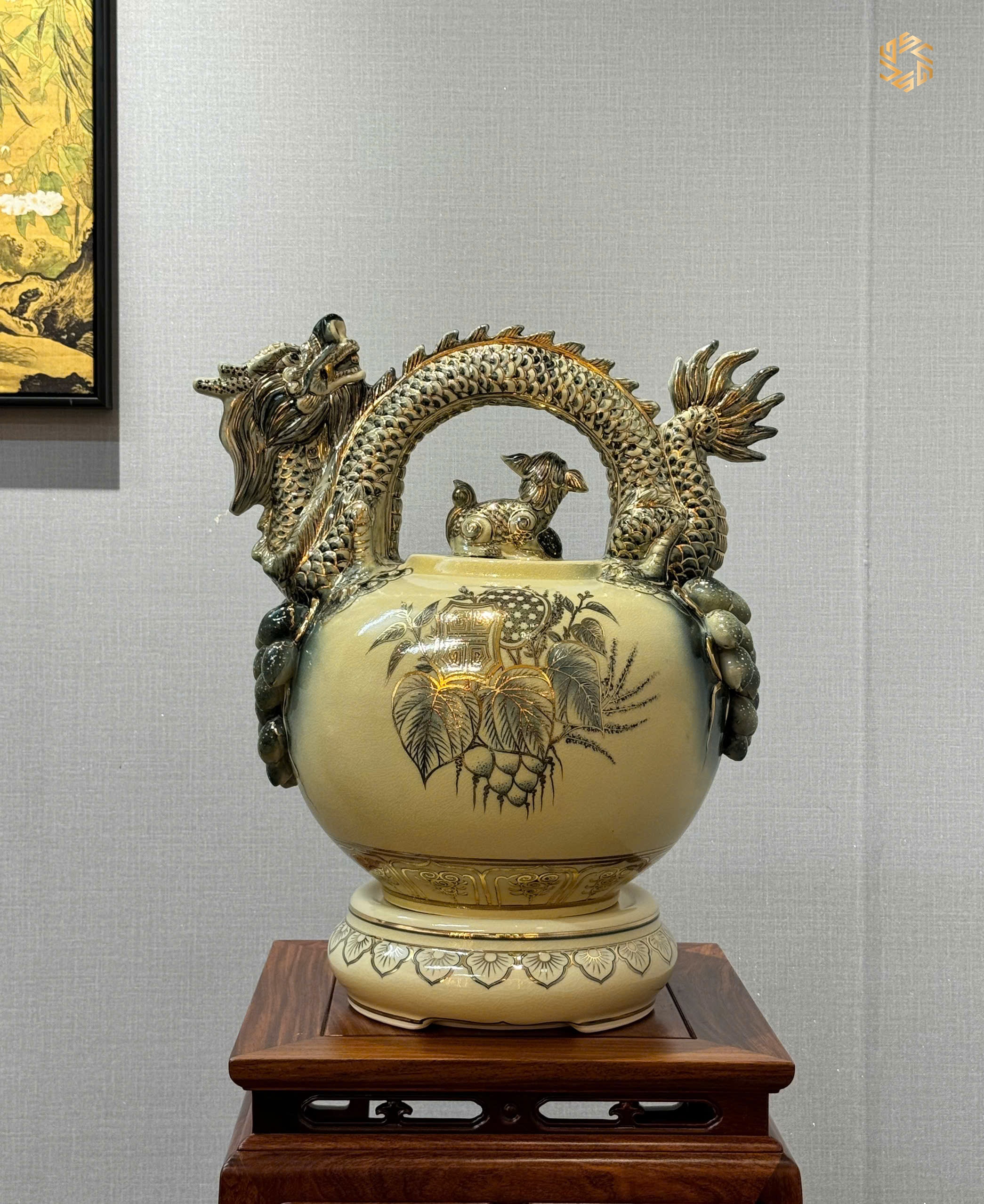 - Chất liệu: Gốm vẽ vàng 24K, thủ công hoàn toàn. Phiên bản nghệ nhân làng nghề GỐM CHU ĐẬU