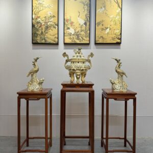 Review Bộ đồ thờ Gốm Chu Đậu rồng vẽ vàng kết hợp Đỉnh Hạc tinh xảo ban dài 217cm – 247cm