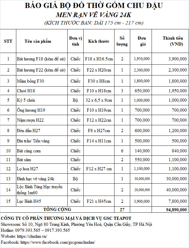 Review Bộ đồ thờ Gốm Chu Đậu vẽ vàng 24k kết hợp cùng Lộc Bình Tùng Hạc truyền thống ban dài 175 cm – 217 cm CB7