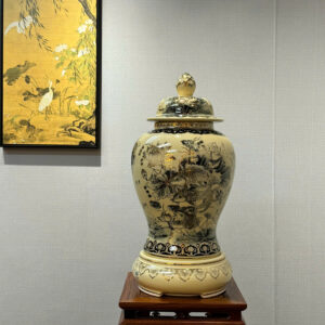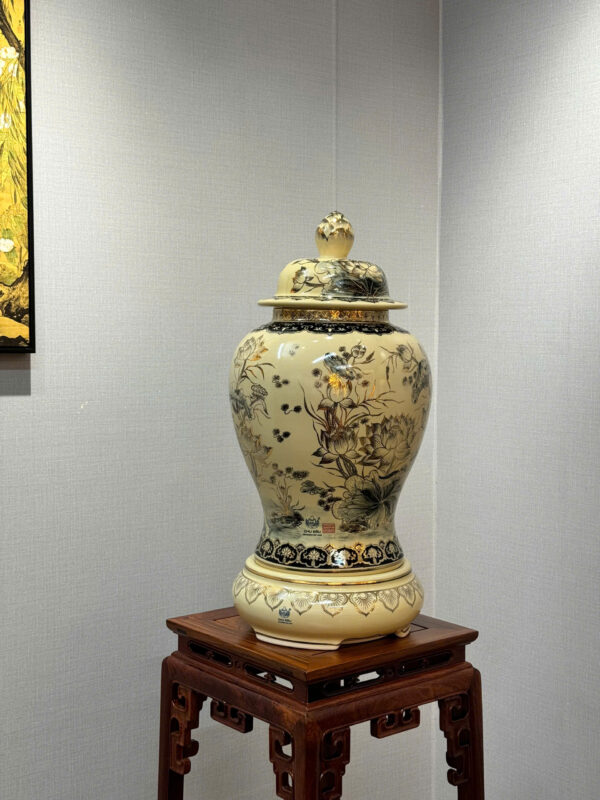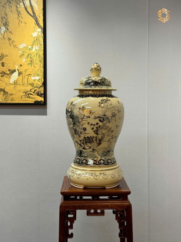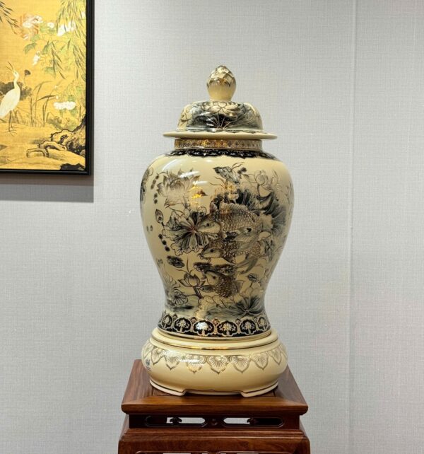 Choé Gốm Chu Đậu H60 hoạ tiết Hoa Sen Cá Chép vẽ vàng 24k ý nghĩa