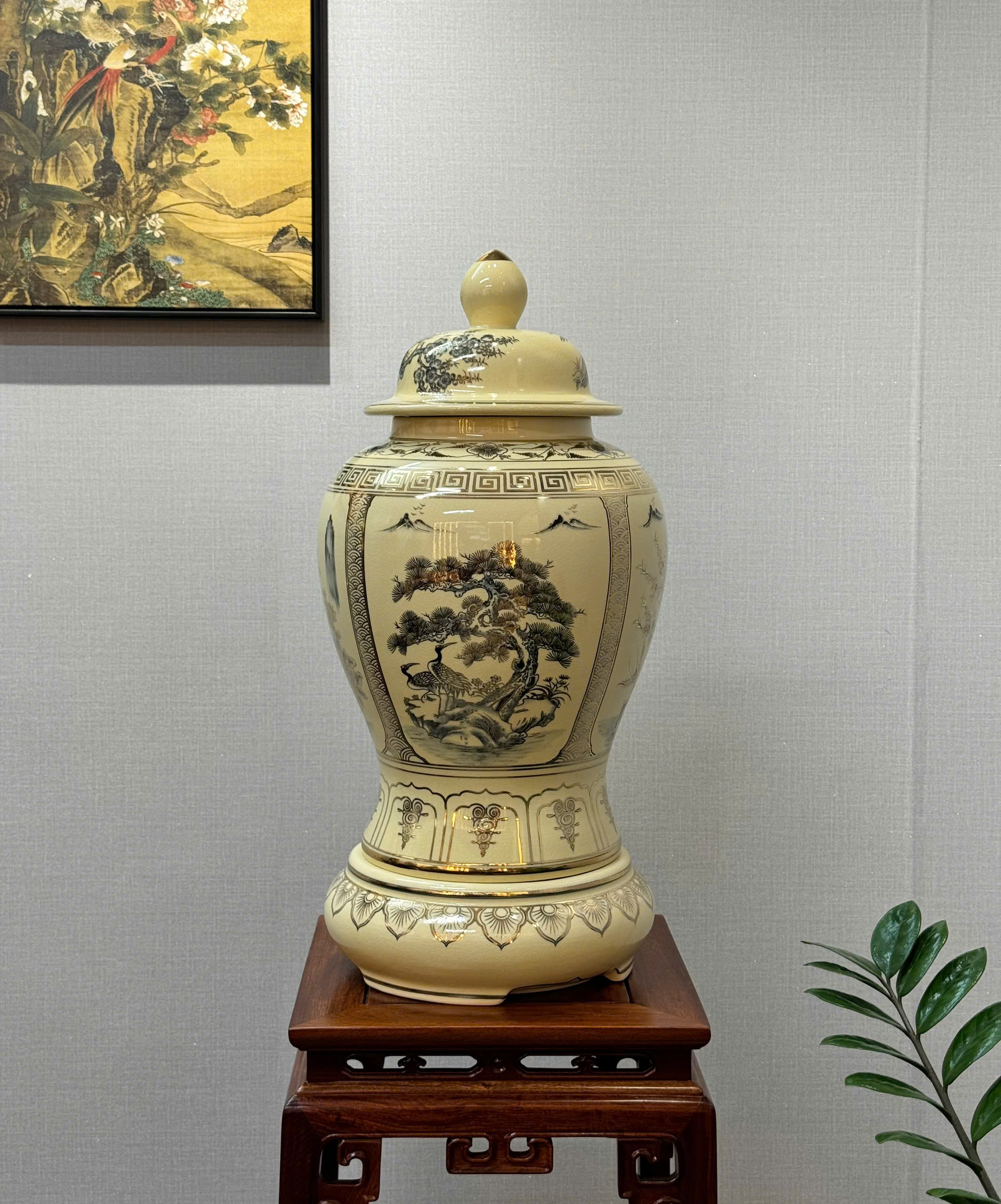 Choé Gốm Chu Đậu H60 hoạ tiết tứ cảnh vẽ vàng 24k ý nghĩa
