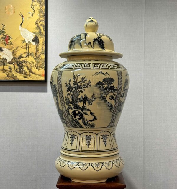 - Chất liệu: Gốm men truyền thống. Hoạ tiết tứ cảnh ý nghĩa.