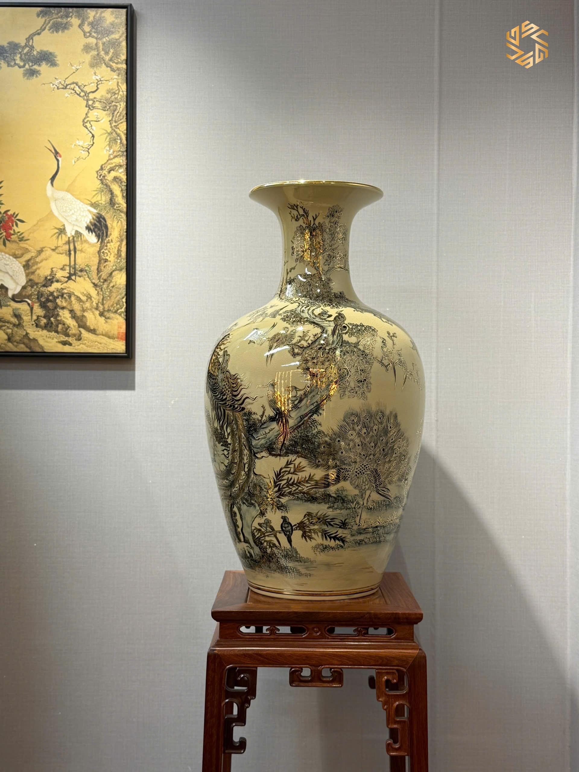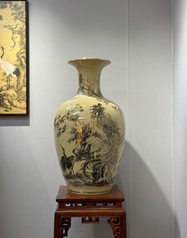 Bảo Bình Gốm Chu Đậu hoạ tiết Bạch Điểu Triều Phụng phiên bản H95 vẽ vàng 24k tinh xảo