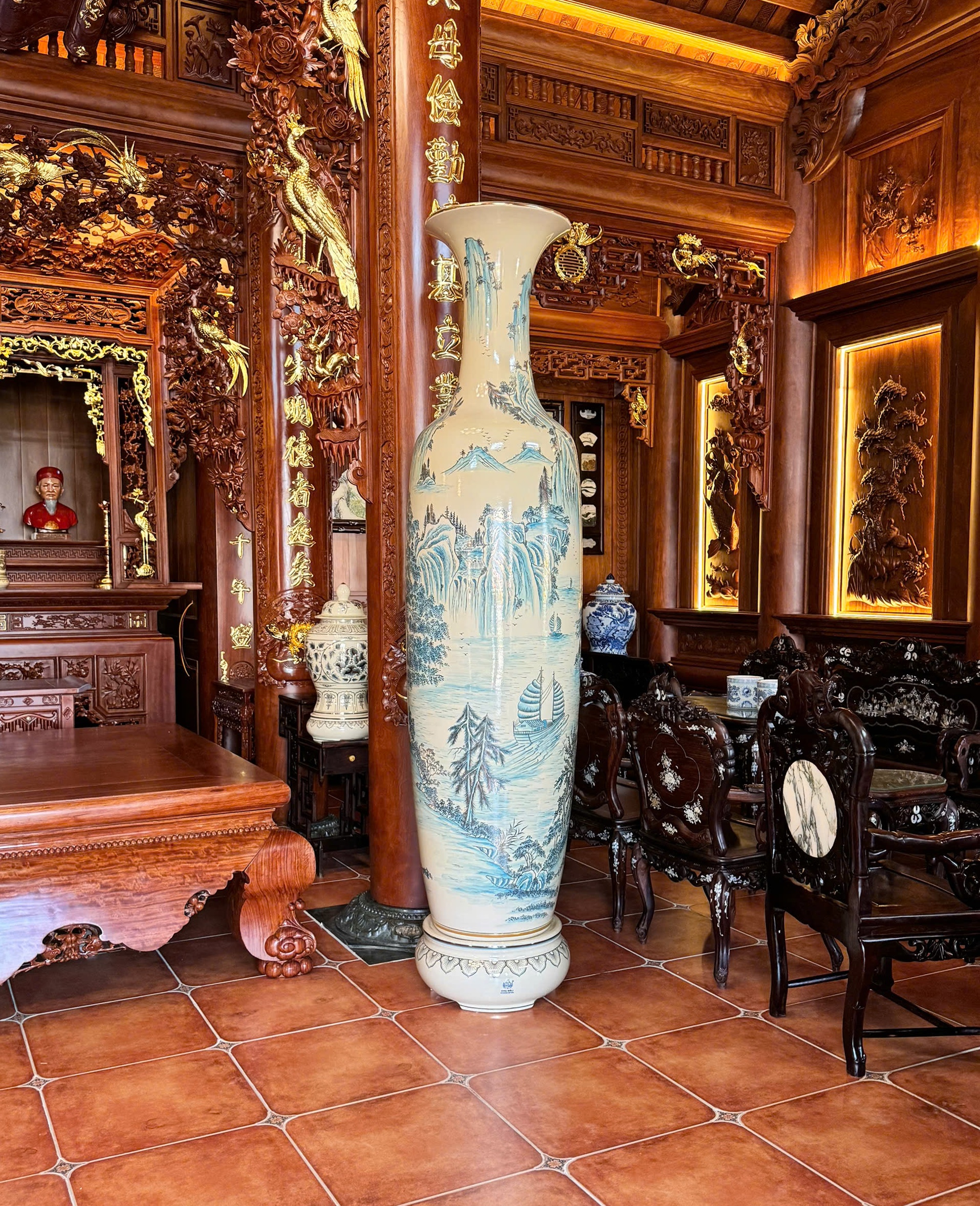 Review Lộc Bình 2M50 Gốm Chu Đậu Vẽ Vàng 24K Hoạ Tiết Theo Yêu Cầu Độc Bản