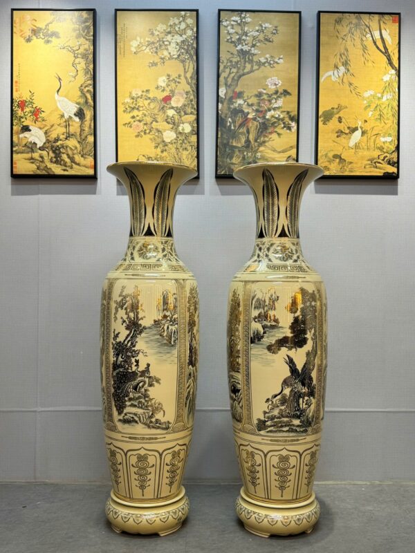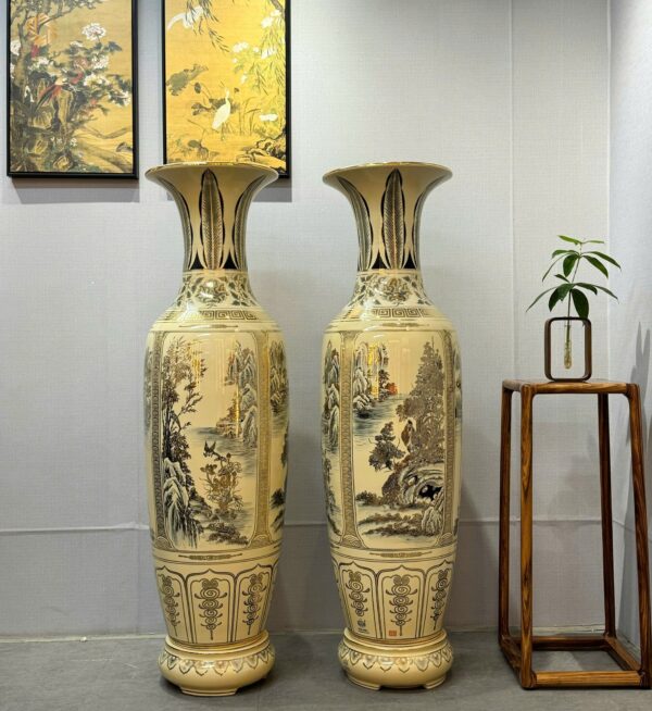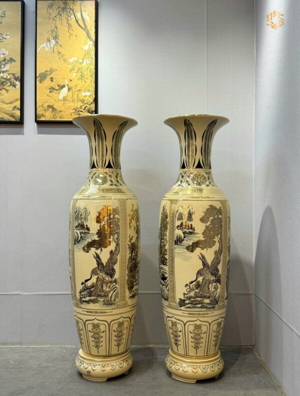 Review Lộc Bình Gốm Chu Đậu 1M35 hoạ tiết Tứ Cảnh vẽ vàng 24k LBTC01