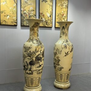 Lộc Bình Gốm Chu Đậu 1M55 hoạ tiết Tùng Hạc vẽ vàng 24k LBTH02