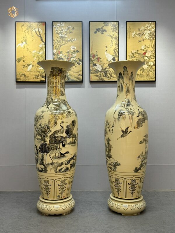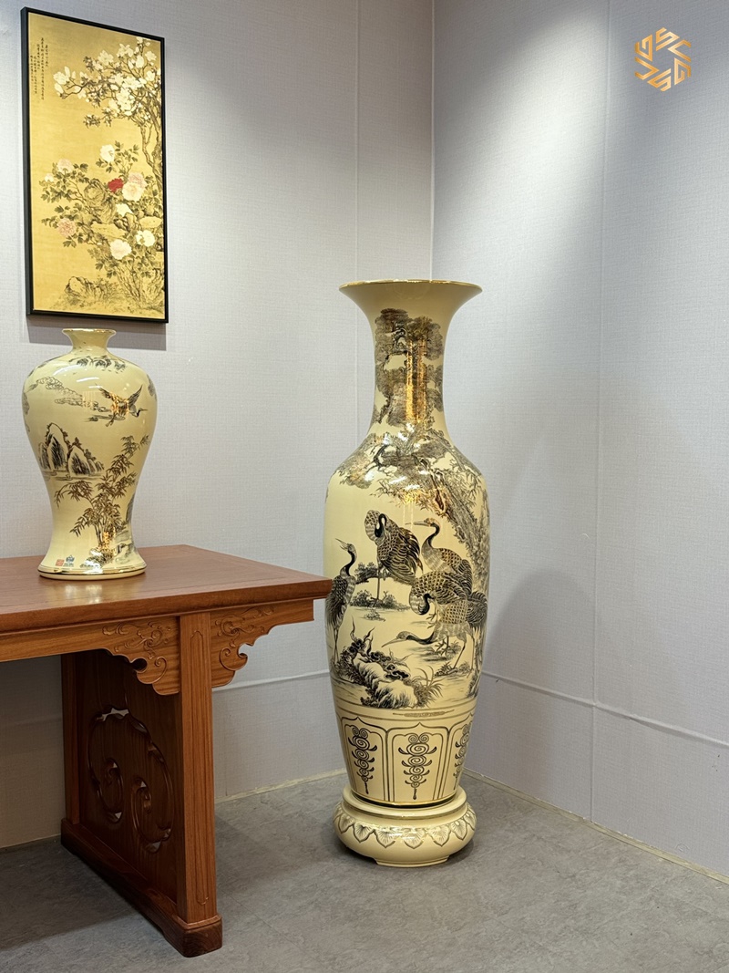 Review Lộc Bình Gốm Chu Đậu 1M55 hoạ tiết Tùng Hạc vẽ vàng 24k LBTH02