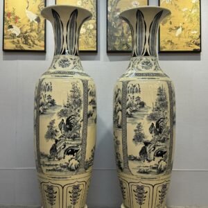 Lộc Bình Gốm Chu Đậu 1M65 hoạ tiết Tứ Cảnh Sơn Thuỷ men gốm truyền thống LBTCST03