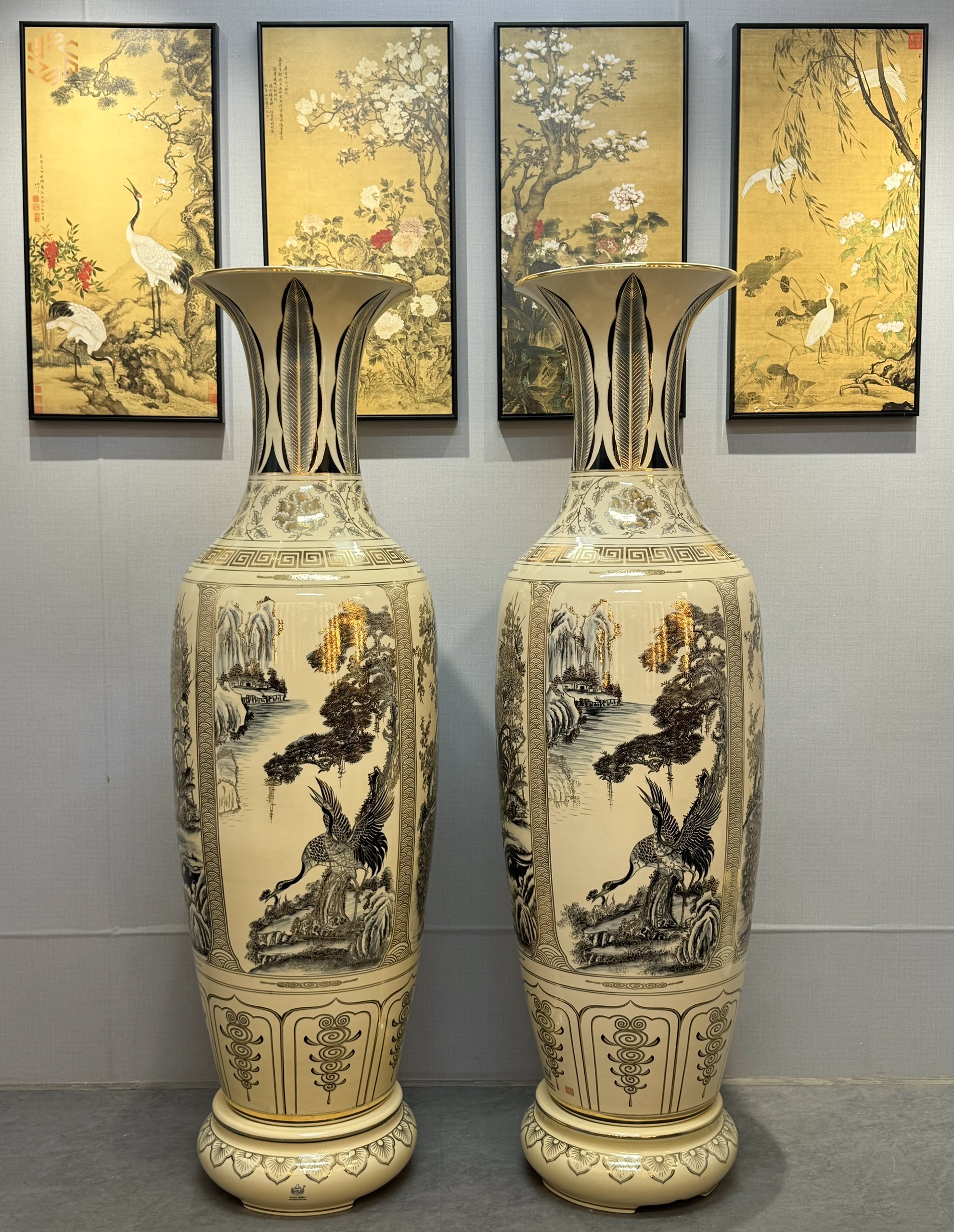 Review Lộc Bình Gốm Chu Đậu 1M65 hoạ tiết Tứ Cảnh Sơn Thuỷ vẽ vàng 24k LBTCST05