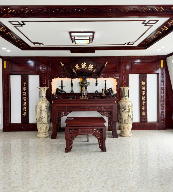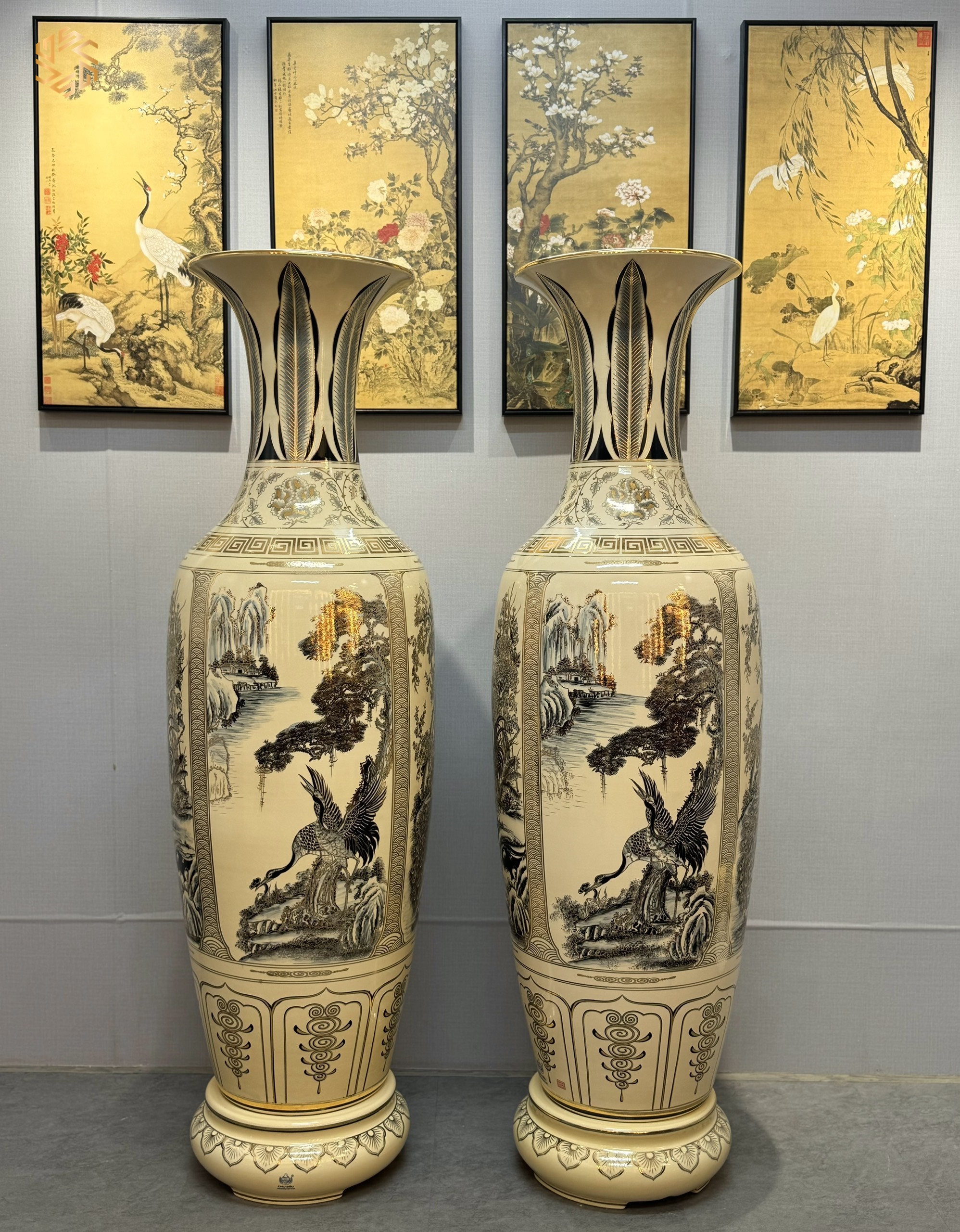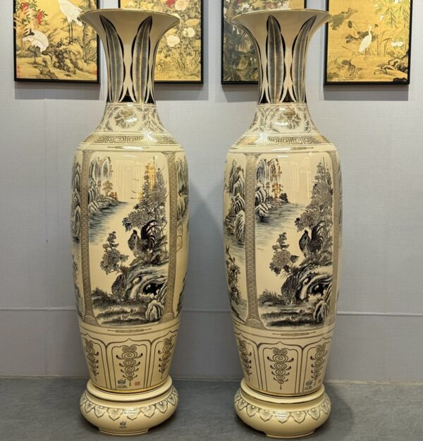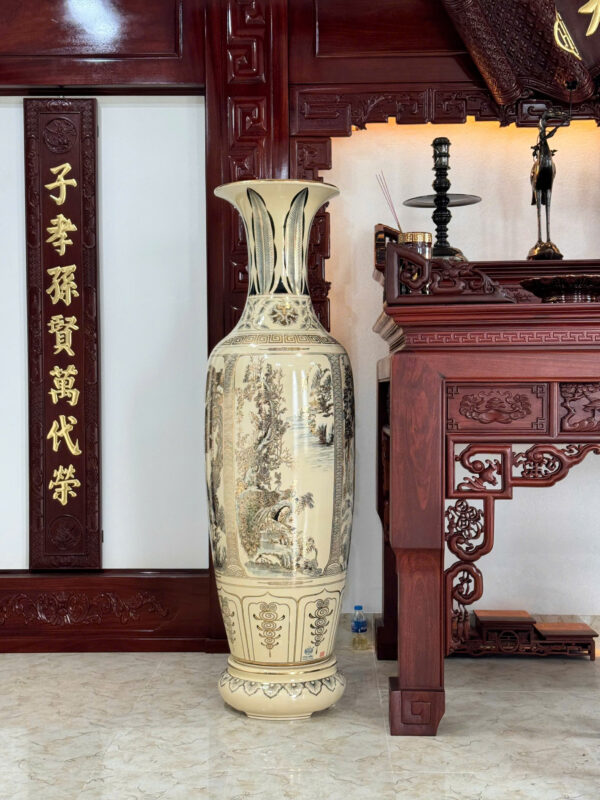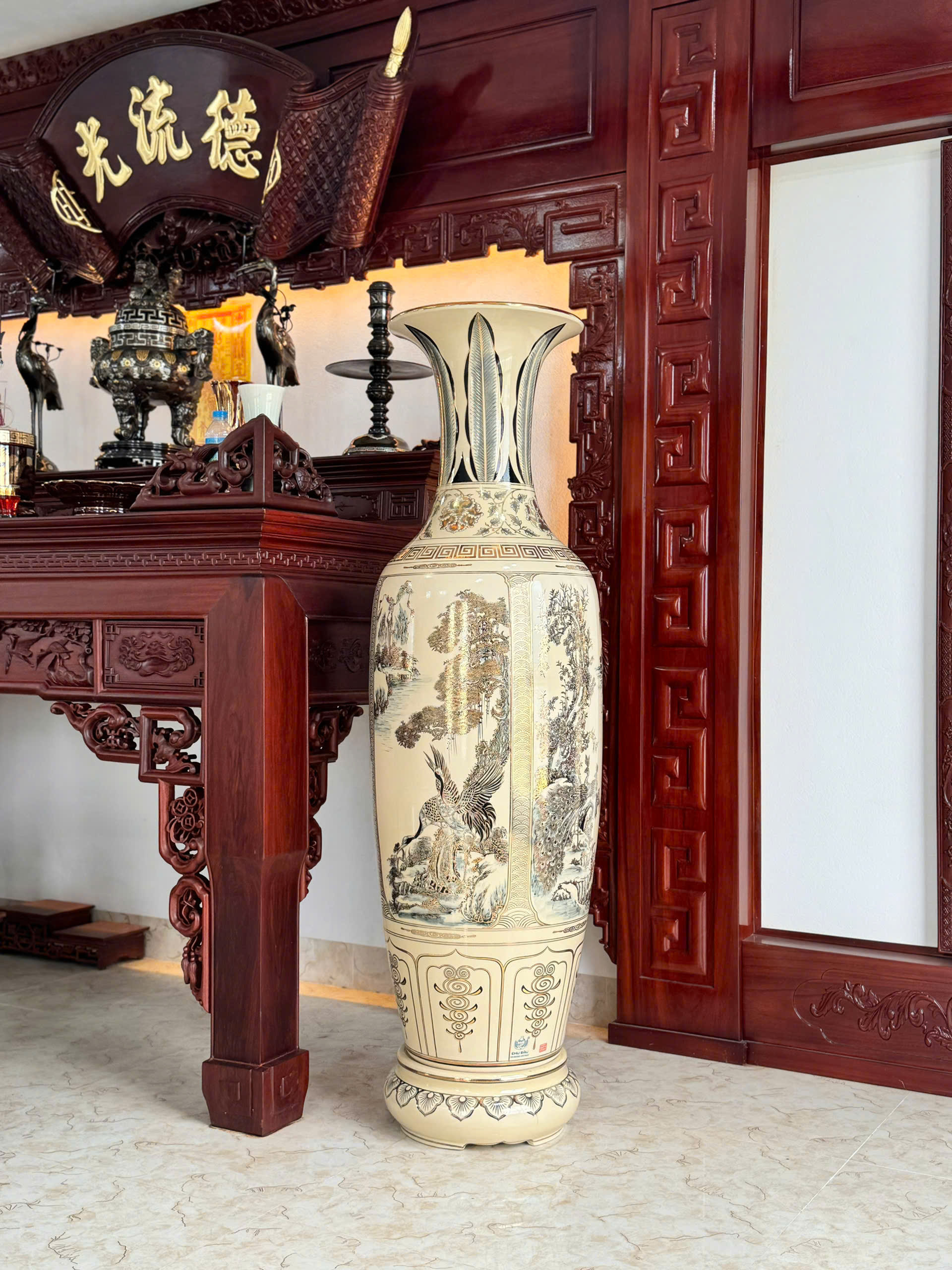 Lộc Bình Gốm Chu Đậu 1M65 hoạ tiết Tứ Cảnh Sơn Thuỷ vẽ vàng 24k LBTCST05