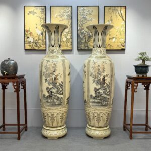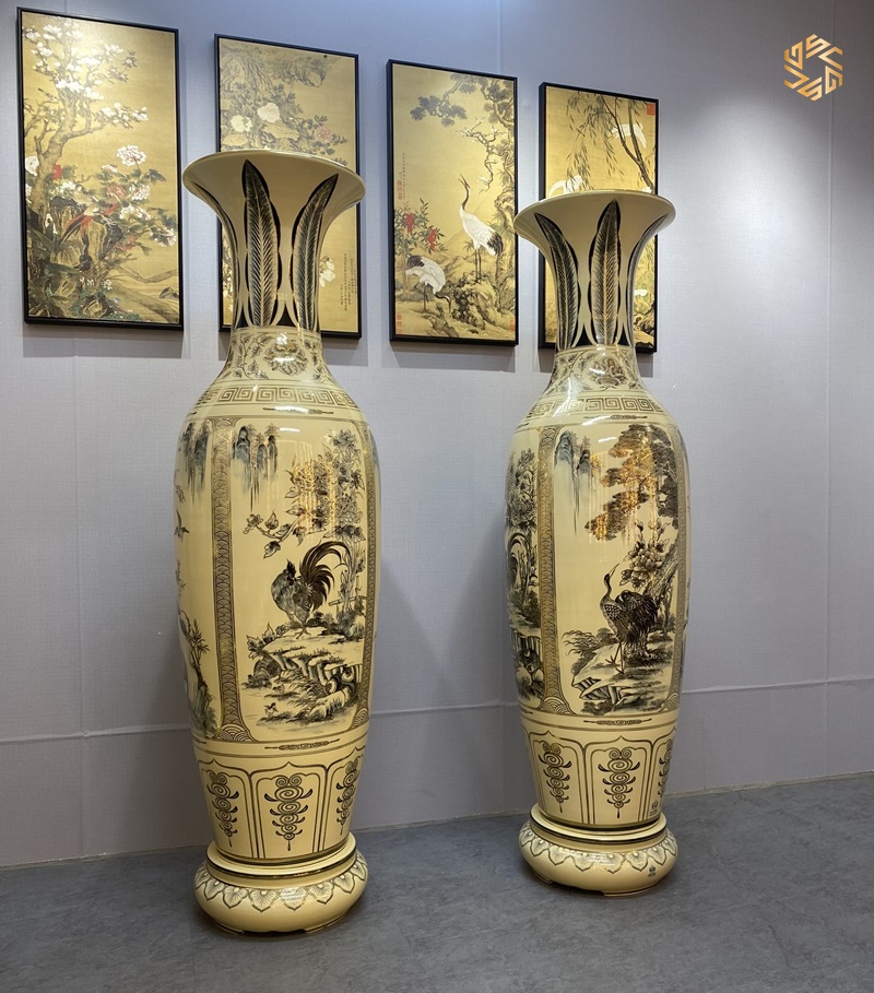 Review Lộc Bình Gốm Chu Đậu 1M75 hoạ tiết Tứ Cảnh vẽ vàng 24k LBTC04