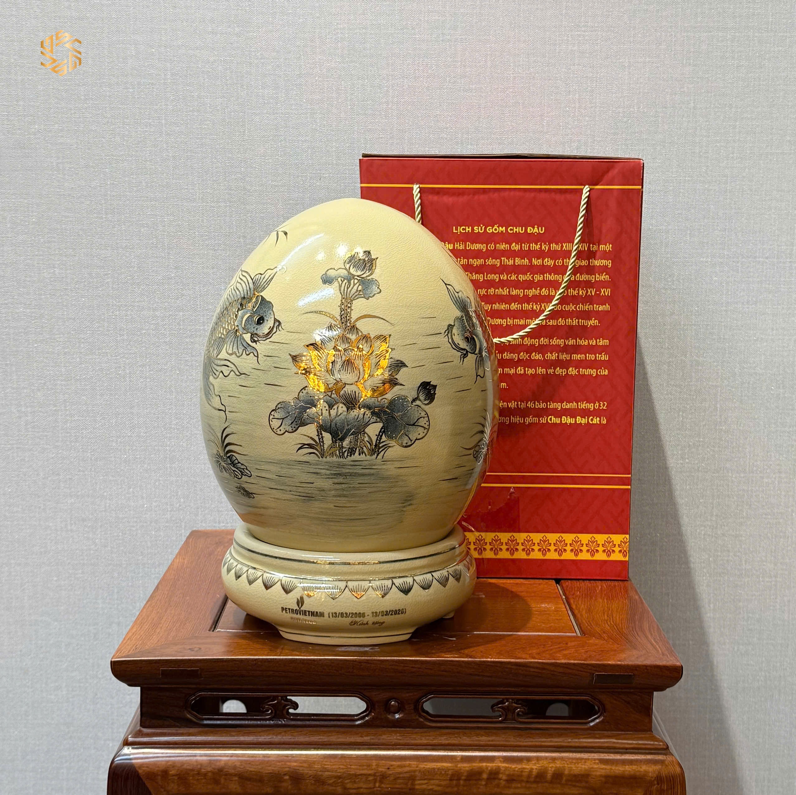 Quà Tặng Gốm Chu Đậu Trứng Tài Lộc Vẽ Vàng 24K H25, Thiết Kế Theo Yêu Cầu, Nâng Tầm Sự Kiện