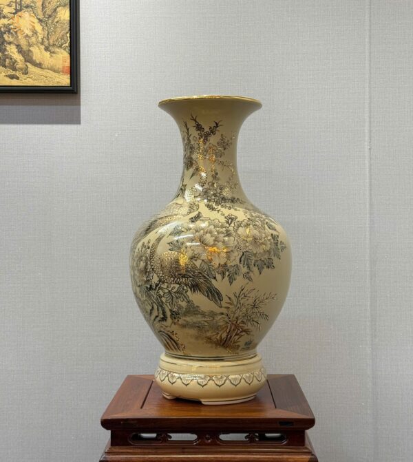 Review Bình Phú Quý H50 Gốm Chu Đậu Hoạ Tiết Chim Công Hoa Đào Vẽ Vàng 24k PQCĐ03