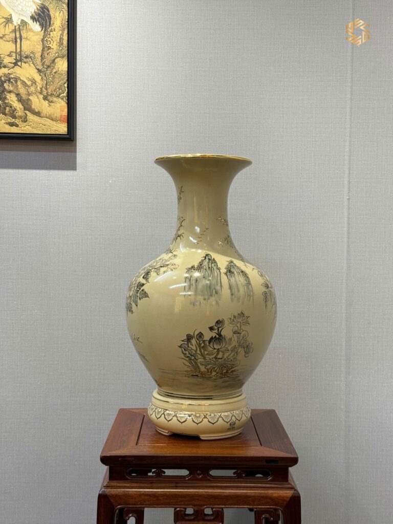 - Kích thước: Bình Cao 50cm, chiều ngang 35cm, chiều cao bao gồm cả đế : 57cm